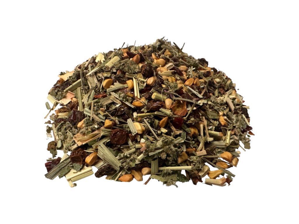 Naše bylinná směs "Imunitní Booster" je pečlivě sestavená z přírodních ingrediencí, které jsou známé pro své schopnosti podporovat imunitní systém a celkové zdraví. Tato vyvážená kombinace šípku, rakytníku, echinacey, listů maliníku a ostružiny, doplněná o citronovou trávu, je ideální pro ty, kdo hledají přirozenou cestu k posílení své vitality a obranyschopnosti.
